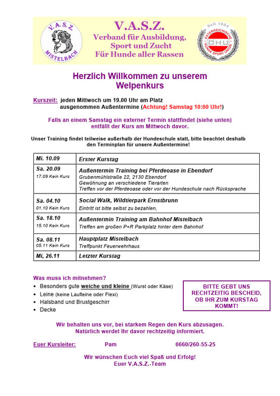 Du kannst aber jederzeit - am besten schon bei der Planung, sich einen Hund ins Haus zu holen - mit uns in Kontakt treten. Wir beraten und helfen Dir auch im Vorfeld!